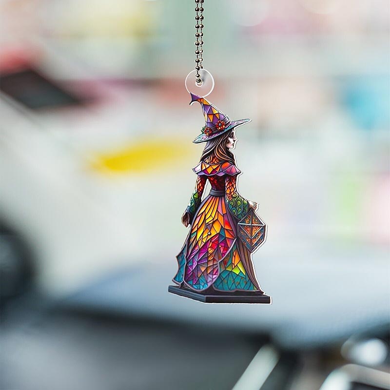 Witch Glass Painted Pendant Car Hang Ornament